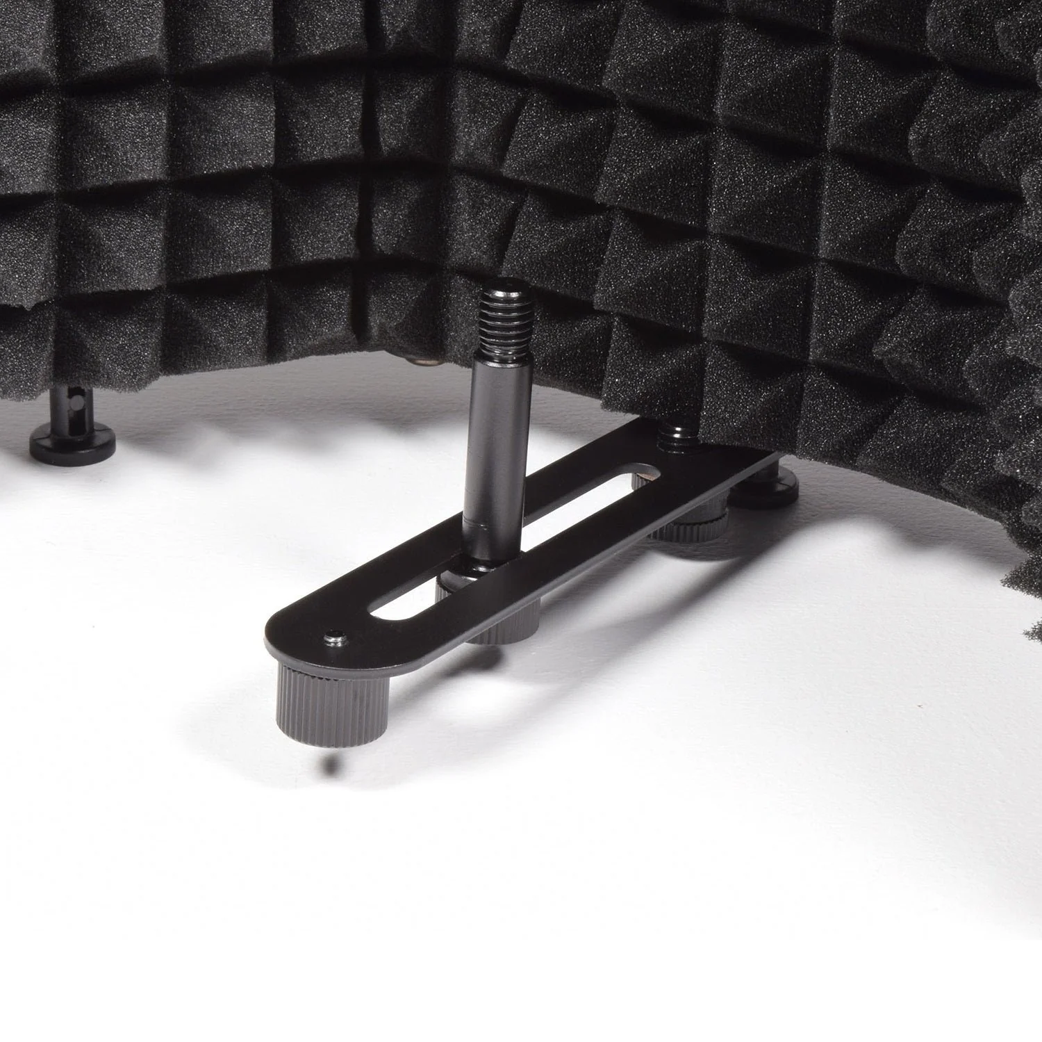 Each panel is loaded with acoustic foam to absorb unwanted reflections and can be mounted onto a microphone stand with standard 3/8" thread and adjusted to the necessary width.